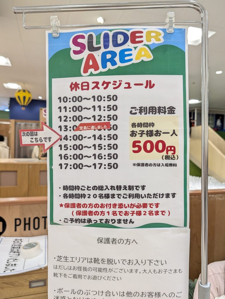 • 大人料金: 子供一人につき大人一人無料! これ、とっても良心的ですよね。大人も料金をとられる施設が多い中、ありがたいサービスです。